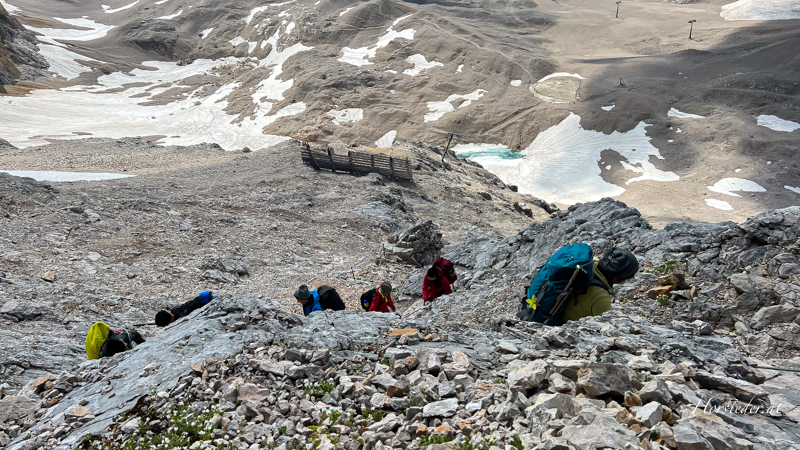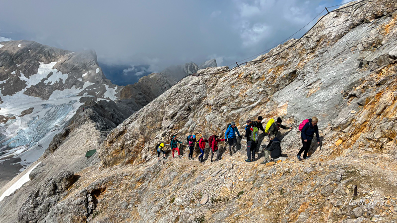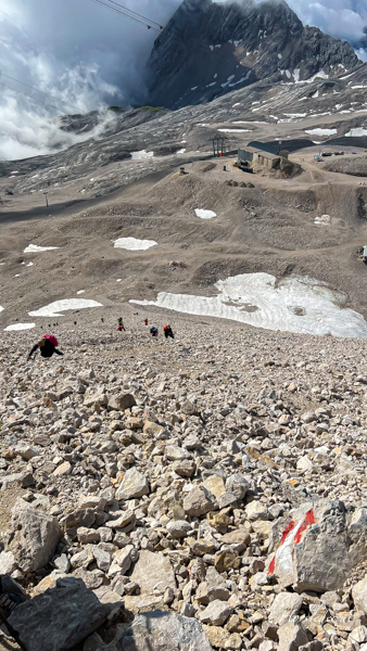 Die Zugspitze ist mit 2962 m ü. NHN der höchste Gipfel des Wettersteingebirges und gleichzeitig Deutschlands höchster Berg. Das Zugspitzmassiv liegt südwestlich von Garmisch-Partenkirchen in Bayern und im Norden Tirols. Ich habe diese Tour in drei tagen gemacht. Wir sind in Garmisch gestartet , über das Höllental und dann über das Reintal zum Gipfel. Eine sehr schöne und abwechslungsreiche Tour. Eine gute Kondition und Trittsicherheit für den letzten Tag sollte man haben. Oben am Gipfel sollte man jedoch keine Einsamkeit erwarten.