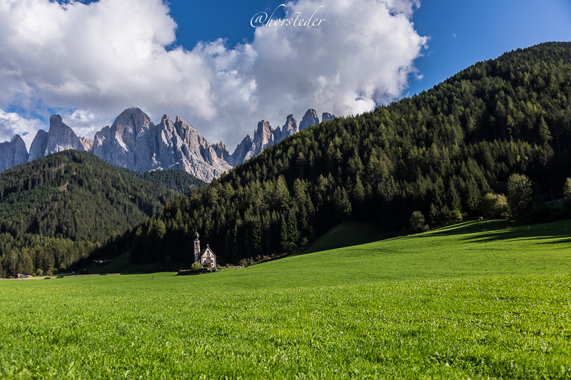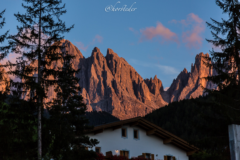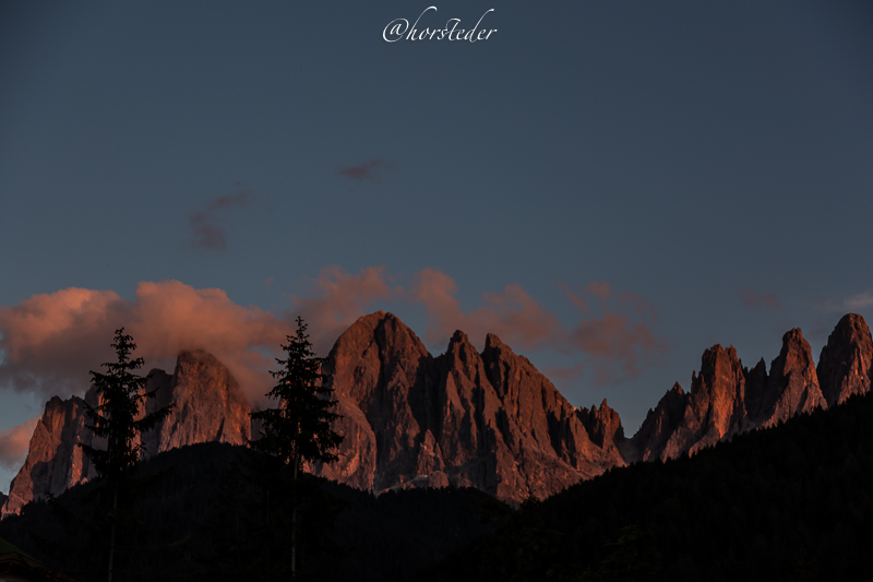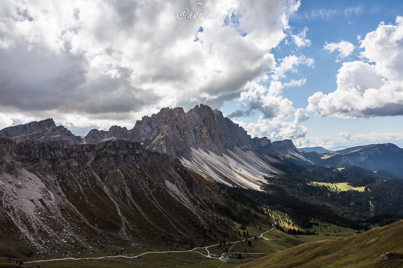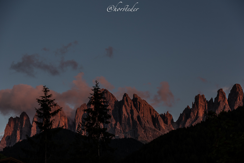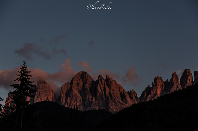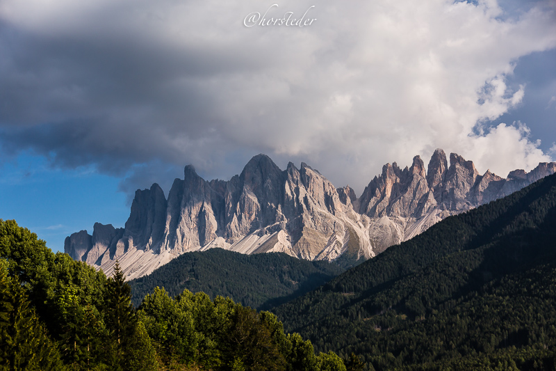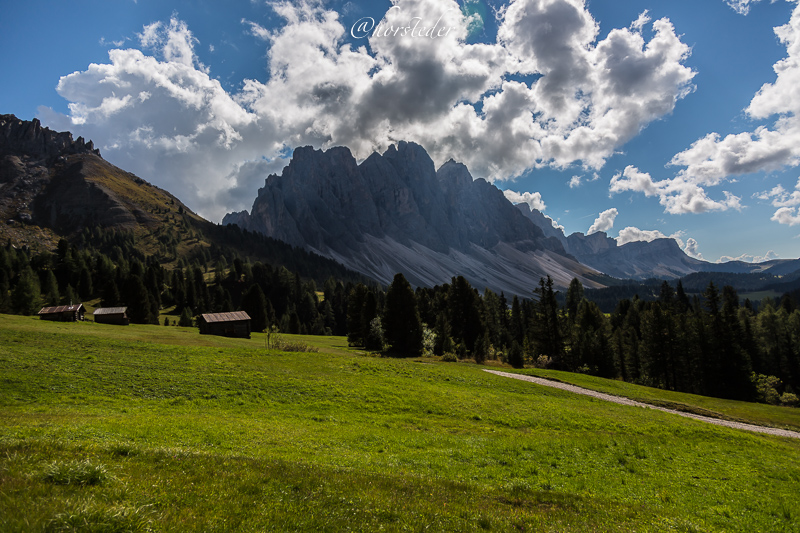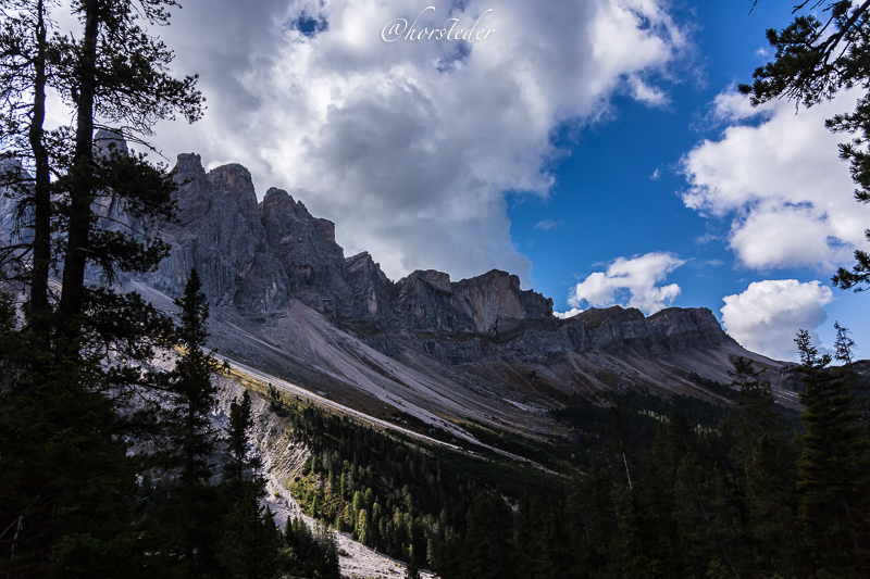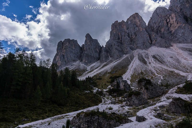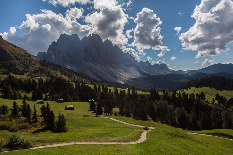 Die Geislergruppe ist eine Gebirgsgruppe der Dolomiten, die den Kamm zwischen Villnöß und Gröden in Südtirol bildet. Sie liegt zu großen Teilen im Naturpark Puez-Geisler. Als Hauptgipfel gilt der Sass Rigais im östlichen Teil des Gebirges. Ich bin entlang der Gruppe gewandert bis zur Schlüterhütte und dann zurück nach St. Magdalena. Eine sehr lange, aber auch eine sehr lohnende Tour!