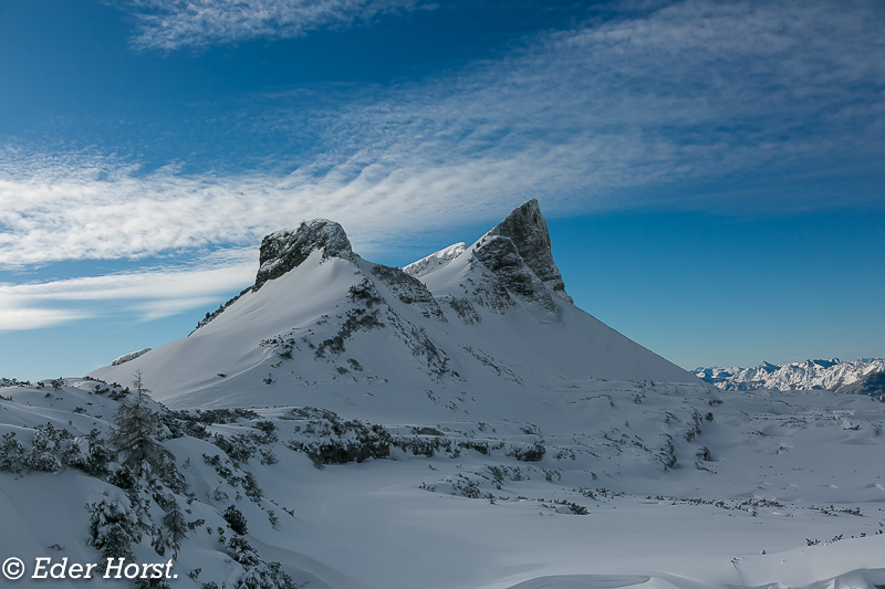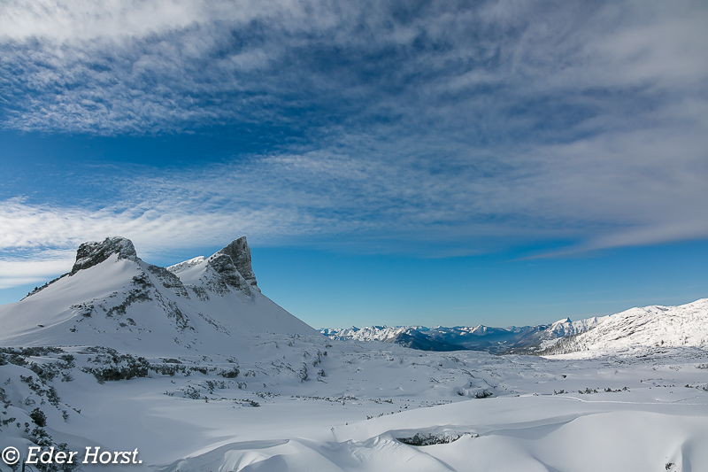Der Loser ist ein 1.837 m ü. A. hoher Gipfel im Ausseerland in der Steiermark. Er bildet den südlichen Endpunkt des Augstkamms im Toten Gebirge. Sein markanter, kastellartiger Gipfelaufbau aus Tressensteinkalk des Oberjura macht ihn zu einem Wahrzeichen der Region. Ich bin Richtung Wildenseehütte gewandert, habe mich jedoch zeitlich etwas verschätzt. Wenn keine Spur vorhanden ist, man das Gelände nicht kennt oder gar Nebel einfällt, sollte man lieber auf die Tour verzichten. Die Wintermarkierungen sind in der Ferne oft schwer erkennbar, und man darf die Gefahr der zahlreichen, tiefen Dolinen nicht unterschätzen.