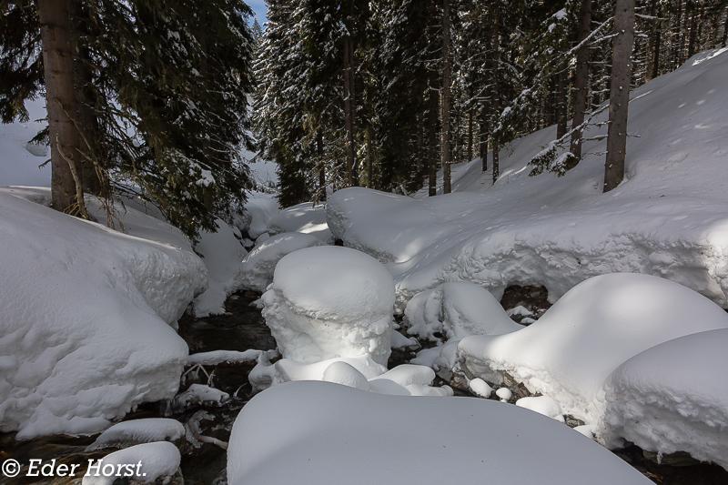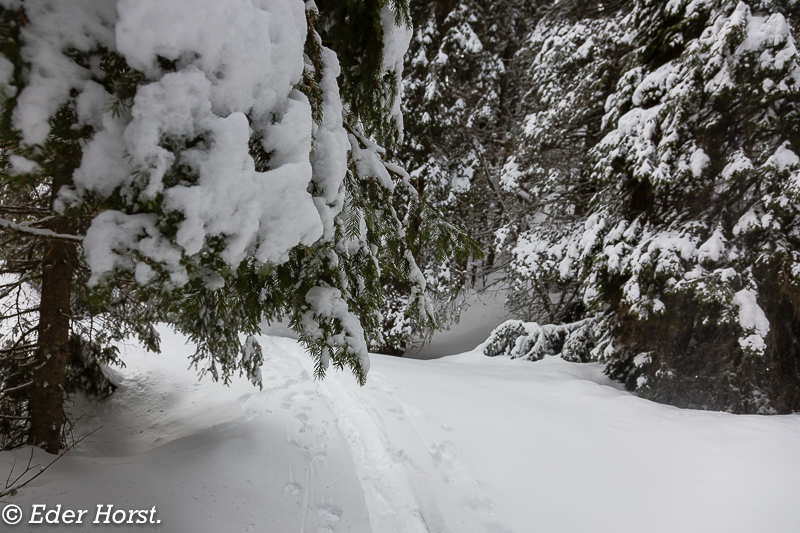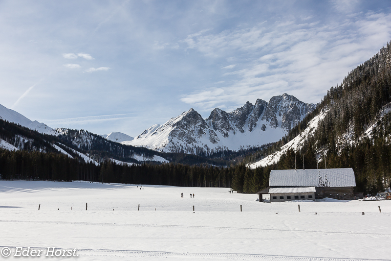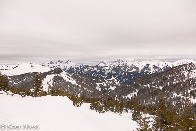 Schon beim Start an der Bergerhube imponieren die Berge am südlichen Talschluss des Triebentals. Die Schneeschuhwanderung führt zunächst auf Forststraßen zur Moaralm. Zuletzt steigen wir über einen etwas steileren Hang zum Moartörl (1.714 m) auf, von wo aus wir eine herrliche Sicht zu den Gesäusebergen im Norden und den Gipfeln der Niederen Tauern genießen können. Die Strecke ist zumindest bis zur Moaralm oft von Skitourengehern und Schneeschuhwanderern gespurt. Das Wetter war leider nicht so schön, jedoch hatte die dadurch entstandene Stimmung ebenfalls ihren Reiz.
