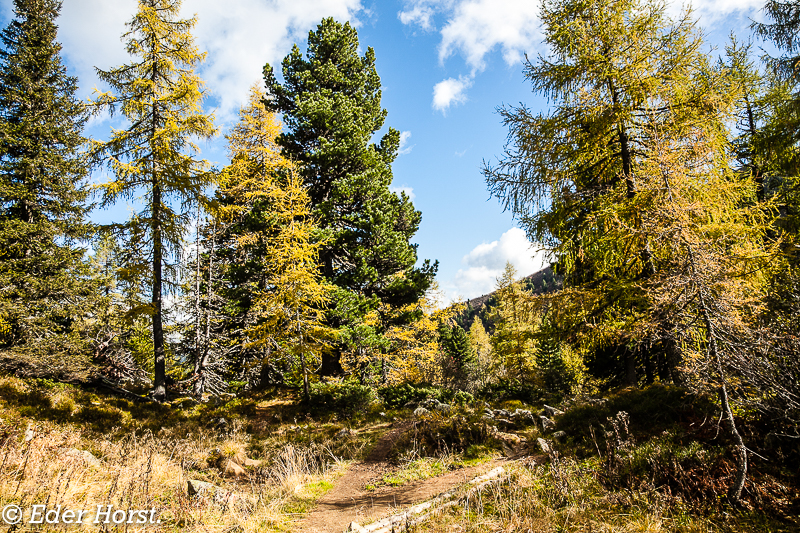 Der Große Bösenstein (auch Großer Pölsenstein) ist mit 2.448 m ü. A. der höchste Berg der Rottenmanner Tauern, einer Gebirgskette, die zu den Niederen Tauern gehört und im österreichischen Bundesland Steiermark liegt. Die weitverbreitete Schreibweise „Bösenstein“ ist irreführend, da es sich nicht um einen „bösen“ Stein handelt. Der Berg hat seinen Namen nach dem südlich befindlichen Pölsenbach im gleichnamigen Tal. Wichtigster Stützpunkt und gleichzeitig Ausgangspunkt für viele Bergwanderungen in diesem Gebiet ist die Edelrautehütte, die sich auf 1.725 m befindet, vom Österreichischen Alpenverein betreut wird und bequem über eine Mautstraße von Hohentauern aus erreicht werden kann. Von der Hütte bis zum Gipfel ist mit einer Aufstiegszeit von etwa 2 bis 2,5 Stunden zu rechnen; für den Abstieg sollten etwa 1,5 Stunden Gehzeit kalkuliert werden. Andere Gipfel, die vom Großen Bösenstein bzw. von der Edelrautehütte aus einfach bestiegen werden können, sind der Kleine Bösenstein, die Sonntagskarspitze und der Große Hengst. Außerdem führt ein anspruchsvoller Höhenweg über den Dreisteckengrat und die Hochhaide zur Rottenmanner Hütte. Ich war im Spätherbst unterwegs; eine wahre Farbenpracht erwartet einen und es sind nur wenige Wanderer unterwegs.